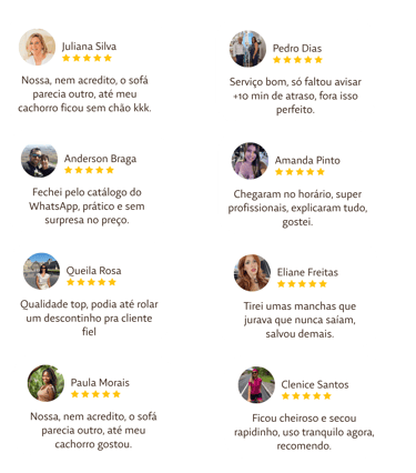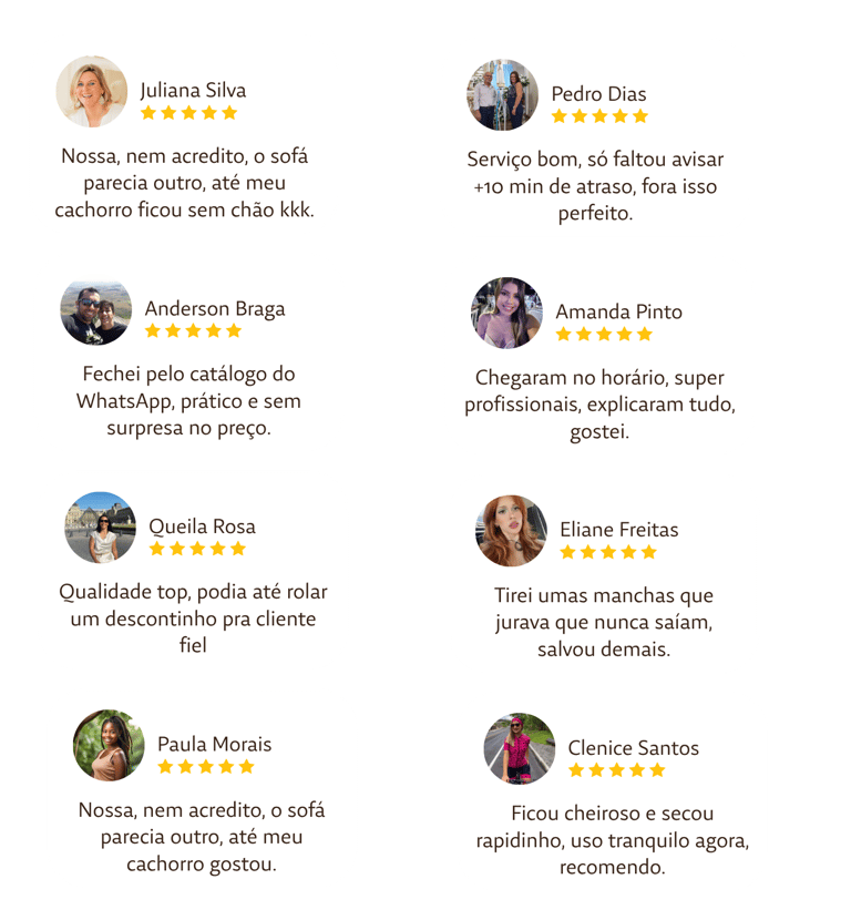 Desde que chegamos a Campos, já foram mais de 500 clientes atendidos e satisfeitos com o nosso trabalho. Cada serviço feito, cada sofá renovado e cada mensagem de agradecimento reforçam o motivo pelo qual a gente faz o que faz: entregar resultado de verdade, com transparência e cuidado em cada detalhe.